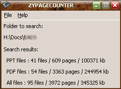 A partir d'un répertoire local ou réseau, elle parcourt tous les répertoires et sous-répertoires, en comptant la taille en kilo-octets et en pages de tous les fichiers PDF (Adobe Acrobat) et PPT (Microsoft PowerPoint).
